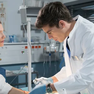 “In aller Freundschaft – Die jungen Ärzte (413): Dr. Ben Ahlbeck und Dr. Matteo Moreau retten Landwirtin Lena Herrmann nach schwerer Verletzung”